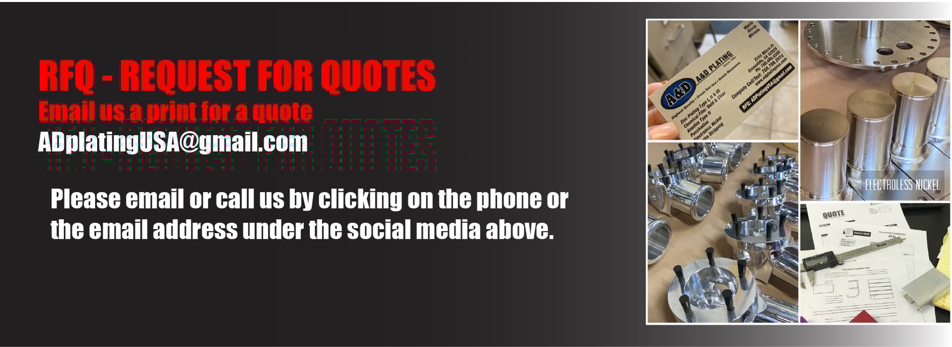 Contact us or send RFQ (request for quotes) to adplatingusa@gmail.com